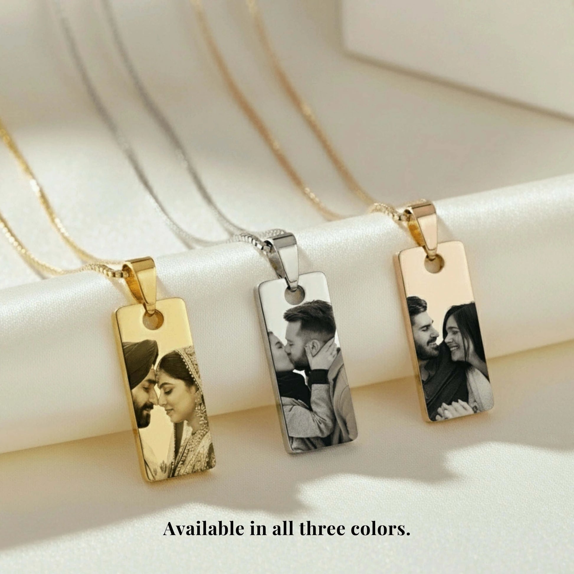 This Couple Photo Engraved Necklace is the perfect gift for any occasion. The engraved couple photo serves as a memory close to the heart, and the necklace is waterproof, ensuring long-lasting wear. Show your love and thoughtfulness with this meaningful necklace.
