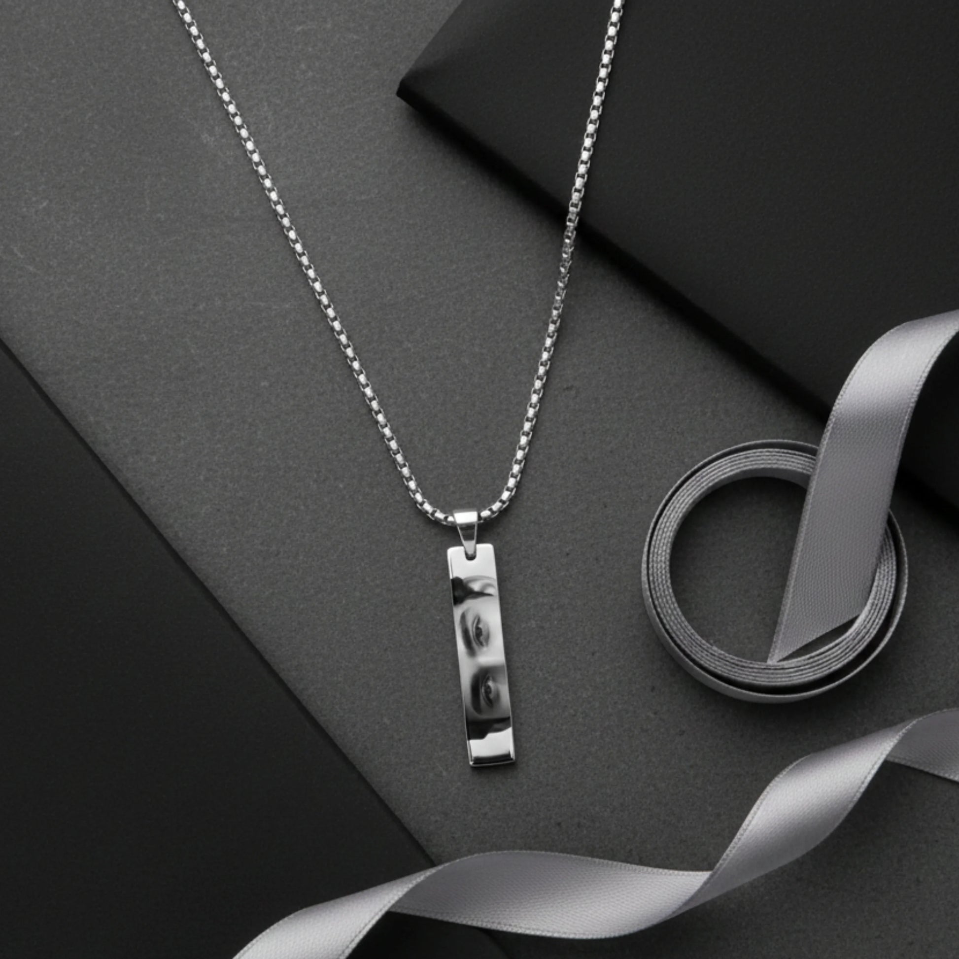 This elegant necklace features a finely detailed eyes engraving, giving it a personal and meaningful touch that's subtle yet impactful. Designed for men who appreciate minimal and thoughtful accessories, it makes a unique gift for any occasion. With its waterproof build and anti-tarnish coating, it stays stylish, strong, and ready for everyday wear. A timeless piece that carries emotion without being loud.