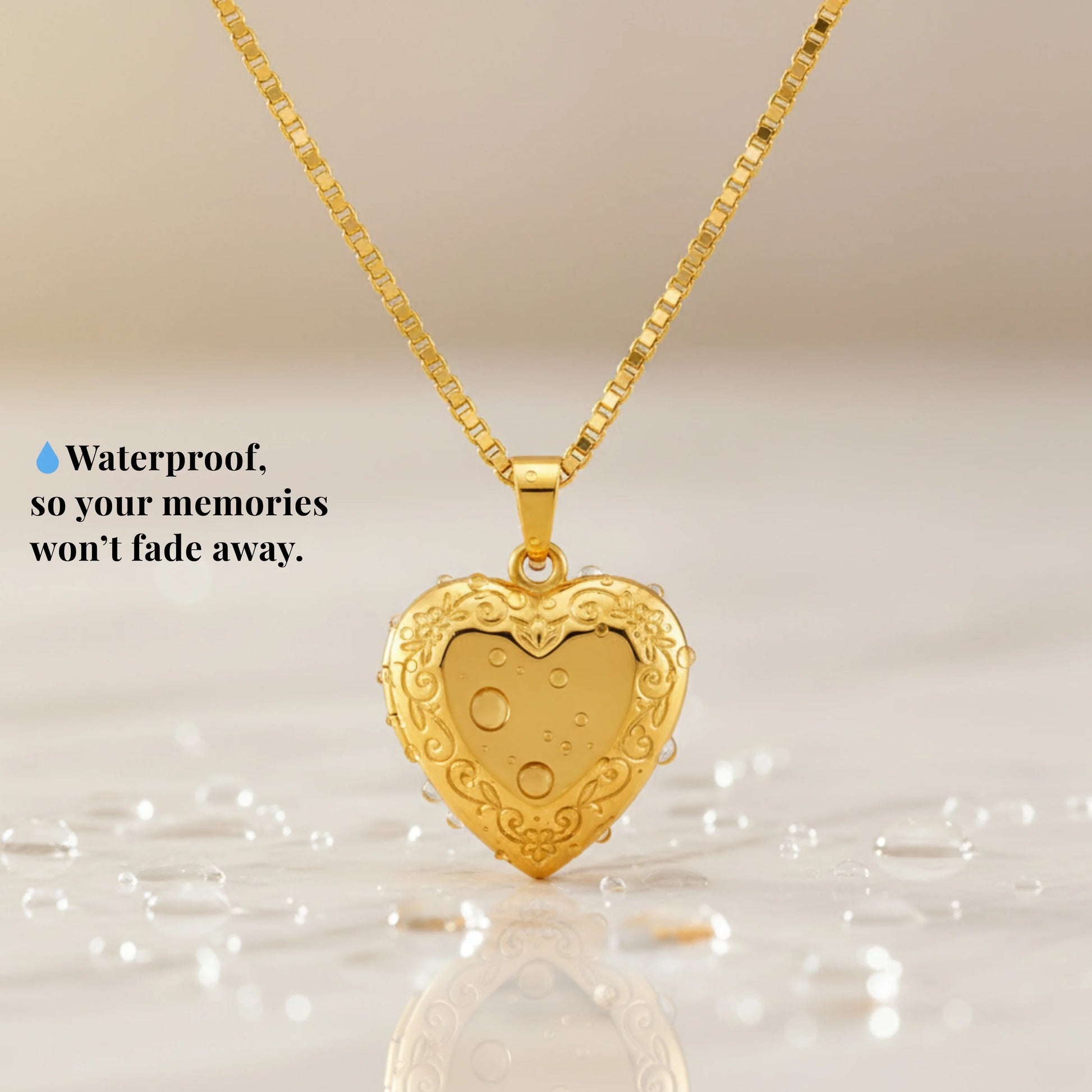 Keep your special moments close with this timeless heart locket. Add your favorite photo inside and personalise it with an initial or symbol on the front. With its waterproof and anti-tarnish finish, it’s made to stay as beautiful as the memories it holds.